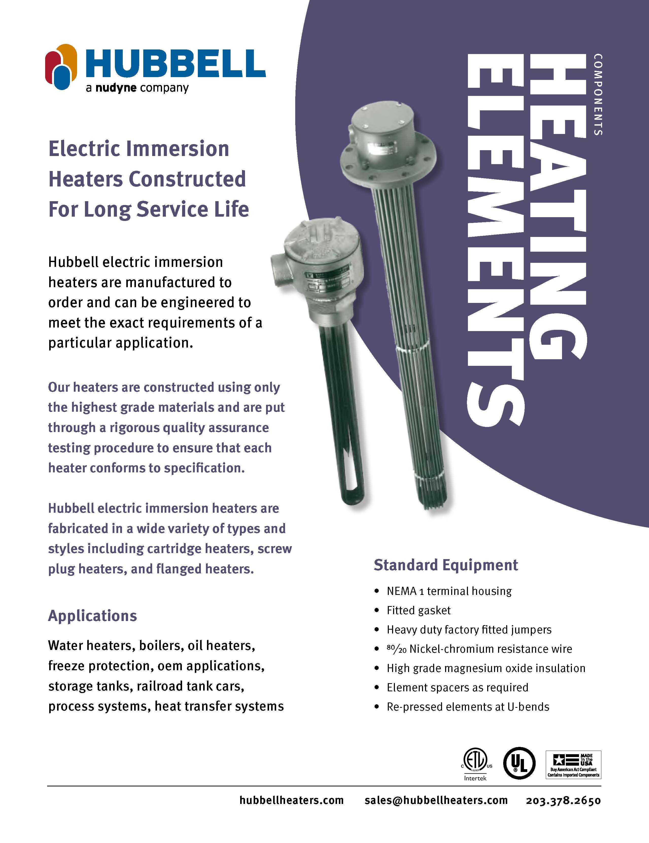 Industrial Immersion Heaters for Water, Oil, & More | Hubbell Heaters
