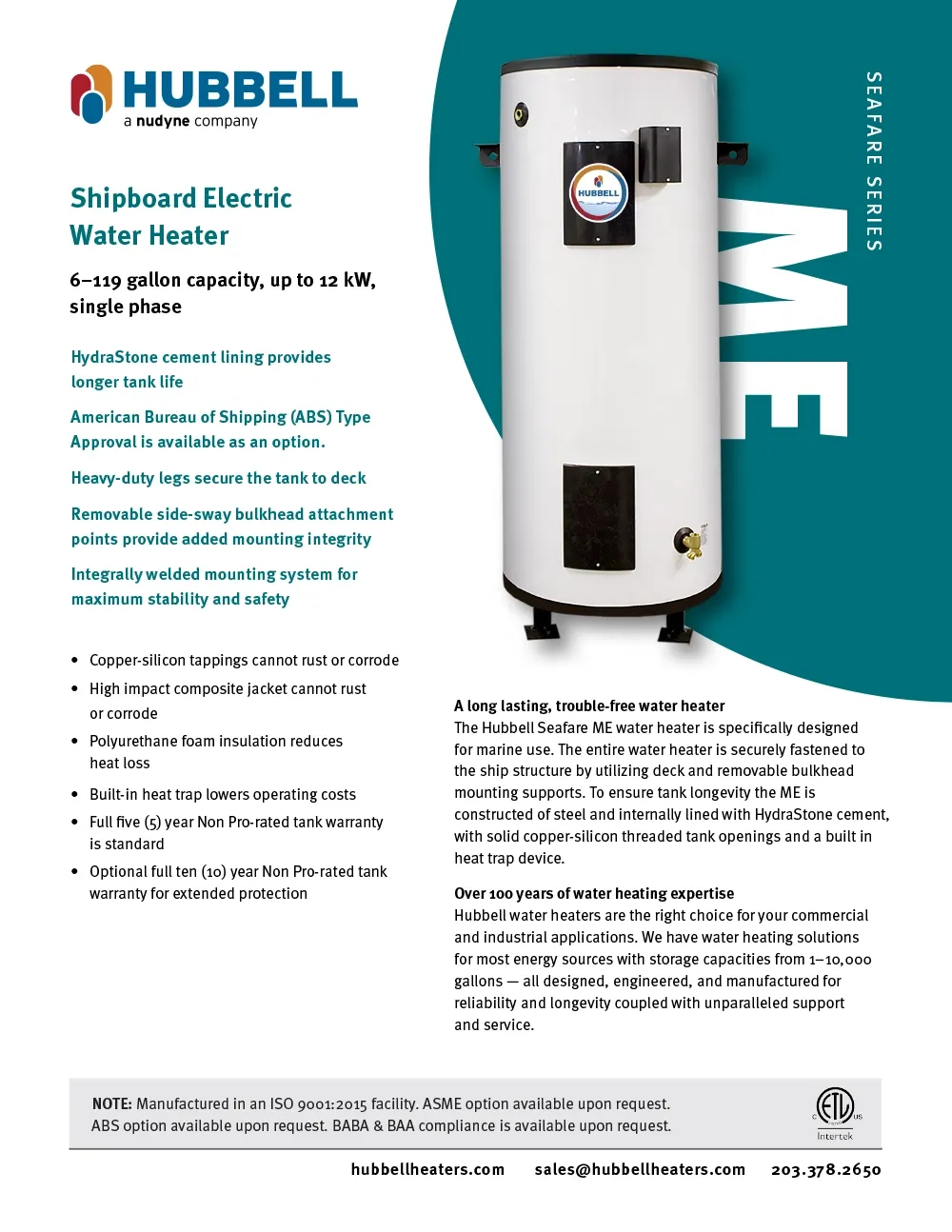 Low Capacity Shipboard Electric Water Heater