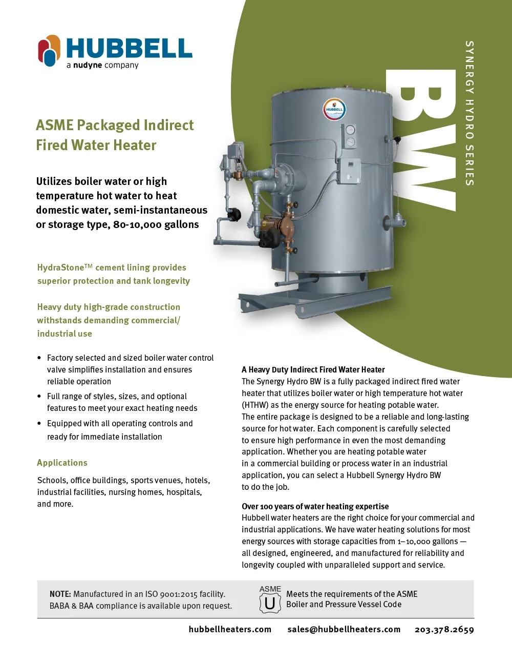 ASME Packaged Indirect Fired Water Heater | Hubbell Heaters